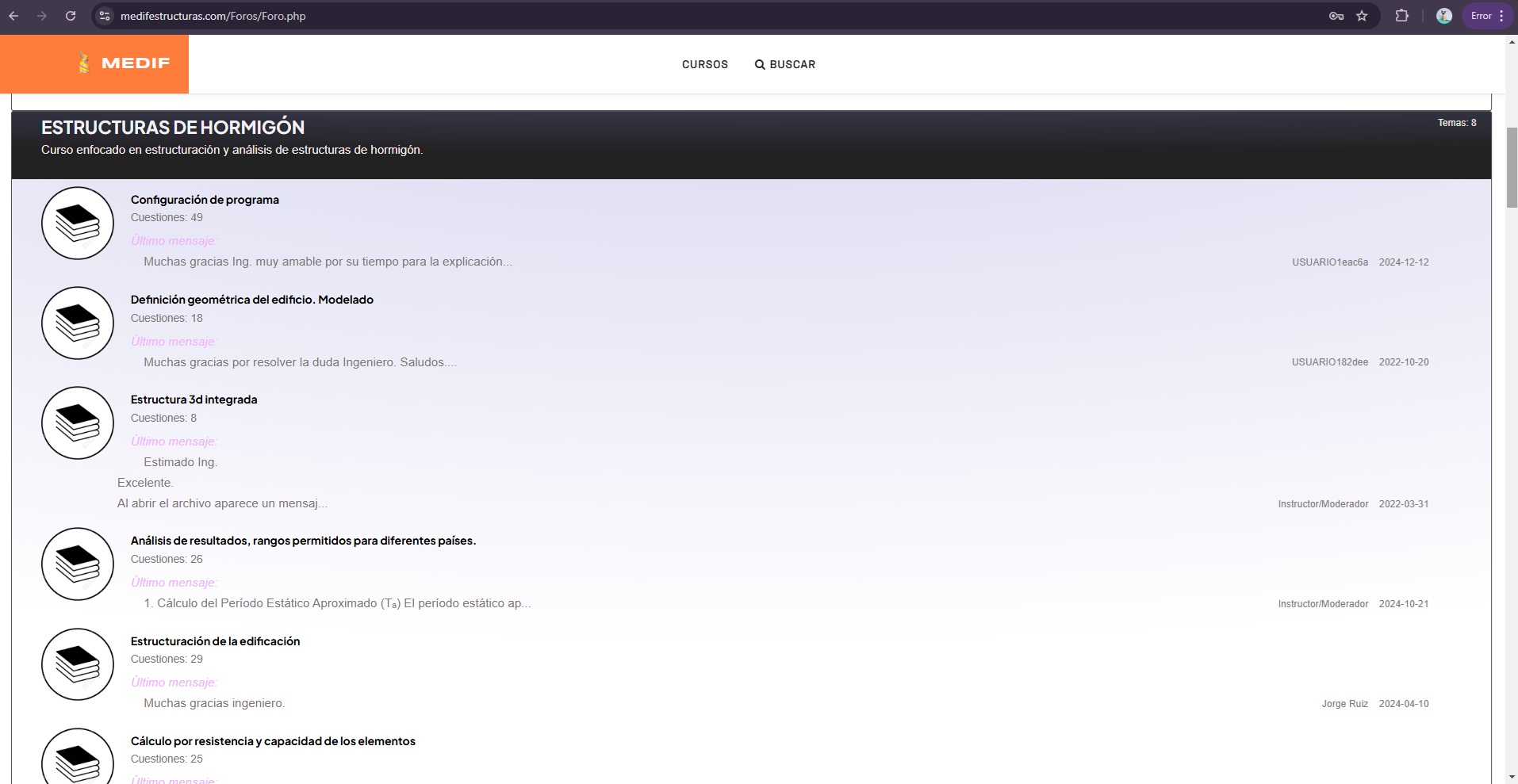 El foro de Medifestructuras no solo ofrece un espacio de interacción, sino que también ha generado una gran cantidad de URLs indexadas por Google, con una diversidad de palabras clave relacionadas con el diseño y cálculo estructural. Esto significa que cualquier usuario que busque términos como "nave industrial diseño" o "curso CYPE" tiene una alta probabilidad de encontrar una página de Medifestructuras entre los primeros resultados.